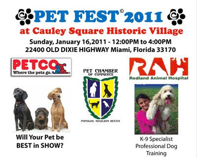 For information on vendor’s booths at “Pet Fest,” call direct to Cauley Square’s Administrative Office at 305-258-3543.