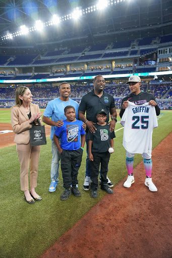 Under the bright lights of loanDepot Park, in front of a cheering crowd, Christopher R. Griffin stood center field—humbled, grateful, and thinking not of the honor he was receiving, but of the two young boys standing beside him.