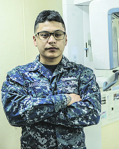Marroquin, a dental technician aboard Ronald Reagan, was returning on a flight from Minneapolis, MN, to Narita Airport in Japan, when his medical training and knowledge was needed after an 80-year-old Japanese woman was found unresponsive by flight attendants.