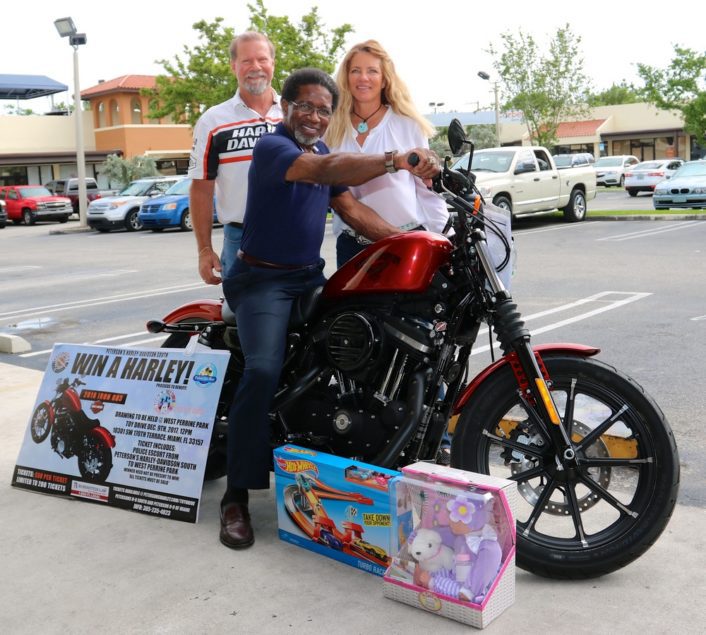 Former Miami Dolphins running back Eugene “Mercury” Morris is pictured with Drew and Linda Peterson of Peterson’s Harley-Davidson South at a recent luncheon organized by Miami’s Community Newspapers. Peterson Harley-Davidson brought out a sweet Harley to promote its second annual Sugar 4 Kids Toy Drive on Saturday, Dec. 9. To learn more, visit www.petersonsharley.com/toydrive.