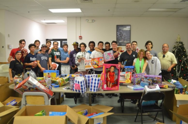 On Dec. 21 members of Gulliver Prep’s varsity baseball team wrapped and delivered hundreds of toys that they had collected with the help of students from one of Gulliver Academy’s fourth grade classes. More than 150 toys were donated to some 30 families in need in Cutler Bay as part of a holiday community outreach initiative led by the Cutler Bay Policing Unit.