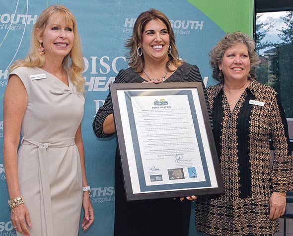 Cutler Bay Councilmember Peggy Bell presented HealthSouth Rehabilitation Hospital CEO Elizabeth Izquierdo with a proclamation celebrating National Rehabilitation Week. Councilmember Sue Loyzelle thanked HealthSouth Miami for hosting a very successful “Lunch and Learn” for more than 60 local seniors.