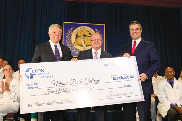 “We are extremely grateful and pleased with the generosity of the Leon family,” said Dr. Eduardo J. Padrón, president of Miami Dade College. “They have raised the bar of civic engagement and giving for all to follow. Thanks to their gift, we will take our already nationally renowned School of Nursing to even greater heights and, more importantly, expand our impact in the community.”