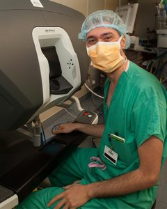 Dr. Fuad Alkhoury, pediatric surgeon, utilizes the da Vinci Xi robot.