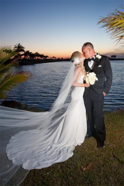 In the five years since it opened, Royal Palm Island of Cutler Bay has hosted many weddings as well as corporate meetings and other events, so when its owner Andres Angulo and his fiancé Marianne Scully started making their own wedding plans they decided that the ideal place for the ceremony would be right there on the shore with the water, sand and palm trees as the backdrop.
