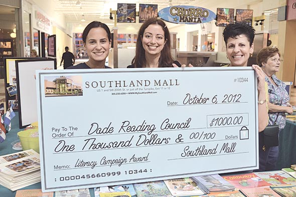 Southland Mall on Saturday, Oct. 6, awarded a $1,000 check to the Dade Reading Council for its contribution in championing the mall’s “Literacy Campaign” launched earlier this year.