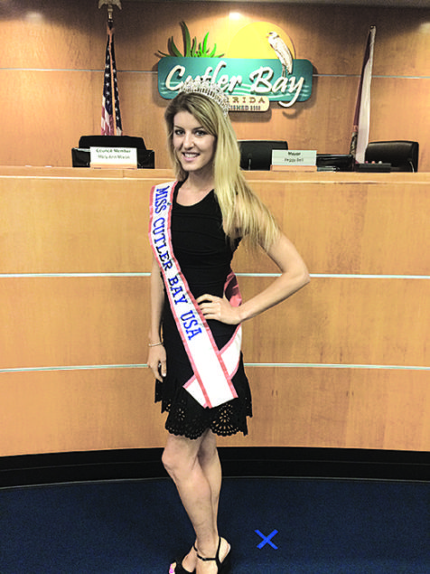 Lenzey Stidham, the first ever “Miss Cutler Bay USA,” was introduced to those attending the May 18 town council meeting. She will be Cutler Bay’s representative to compete at the Miss Florida USA 2017 state championship competition, July 13-16.