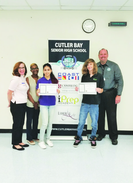 Cutler Bay Senior High has announced that two graduating seniors, Travis Arutt and Isabel Lane, received a perfect score on the United States History End of Course (EOC) for the 2016-17 Florida Statewide Assessment.