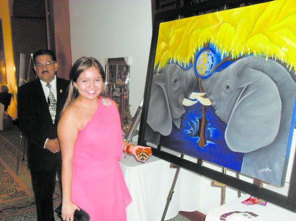 The Casamiro Global Foundation’s 12th Annual Anniversary Gala was true to its title “The World is Aglow with Potential”. Hundreds gathered for this black tie affair at the Hotel Sofitel on Feb. 1 to enjoy a entertaining evening with a silent auction, awards ceremony, dinner and dancing. While the program revolved around honoring social entrepreneurs, one young 15 year old artist, Magyulie Gelves, a graduate of the Foundation’s Leadership Camp and student at DASH, certainly spoke volumes for the work that Juan Casimiro and his board invest in creating entrepreneurs. Gelves not only donated a painting sold to World of Wines (the Cocktail Sponsor) to benefit the Foundation, but also had a table of beautiful hearts made by special needs students. The idea for this program was a result of her camp experience and one encouraged by her teacher who helped her get approval from the school board to make this program a reality. Hearts were on sale with proceeds being invested back into the program.