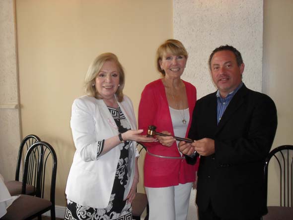 DBC Executive Director Ron Mann (right) presents gavel to DBC Forum Chair Gloria Burns, who will pass it on to incoming Chair Lizz Wiegandt in January.