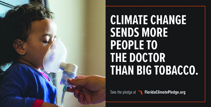 Floridians are encouraged to start thinking about climate change from a personal perspective. The objective of the campaign’s provocative billboards is to shock people into reality, and usher them into understanding that climate change is impacting them now. From an image of a little girl with a nebulizer to the algal blooms impacting our economy, pictures are worth a thousand words. These powerful billboards show the true impacts of climate change.