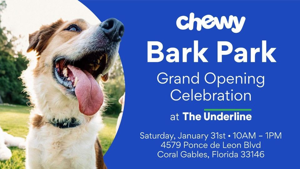Location: Chewy Bark Park at The Underline — 4500 Ponce de Leon Blvd. by SW 42nd Street & Grand Avenue, Coral Gables, Miami, 33146, across from the Trader Joe’s.