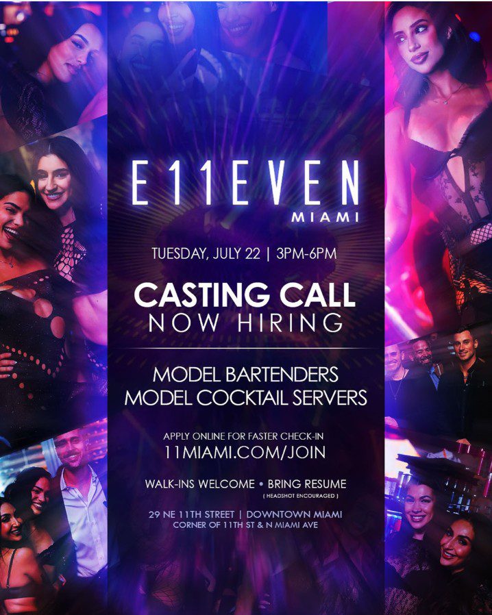 Hiring model bartenders and cocktail servers Tuesday 7/22 from 3-6PM.
