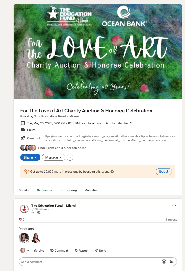 Join The Education Fund May 20, 2025, 5-8 PM at Jungle Island and celebrate 40 years of impact with The Education Fund at our annual For the Love of Art Charity Auction & Honoree Celebration.