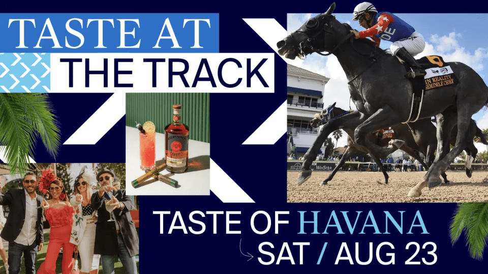 Join Gulfstream Park’s “Taste at the Track” Taste of Havana edition on Saturday, August 23rd, celebrating the rich flavors and vibrant culture of Cuba. The premium unlimited tasting event brings together the thrill of live Thoroughbred horse racing with an unforgettable Cuban-inspired culinary and cocktail experience, all with breathtaking views of the legendary Gulfstream Park racetrack.