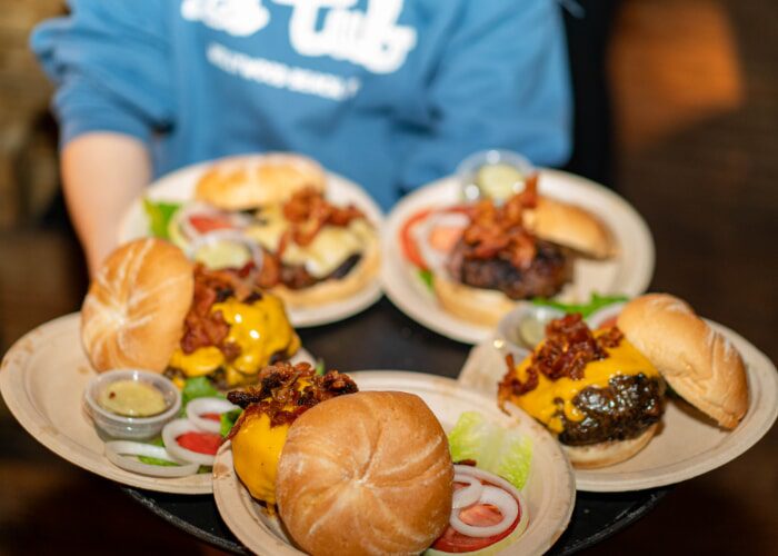 indulging in the burger that put it on the map.