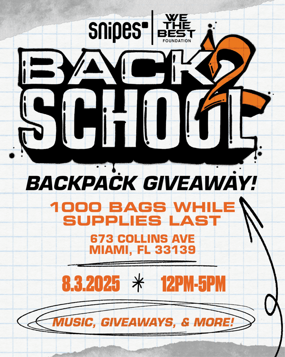 Miami: SNIPES Hosts Back-to-School Giveaway at We The Best Store; Sunday, August 3; Open to The Public