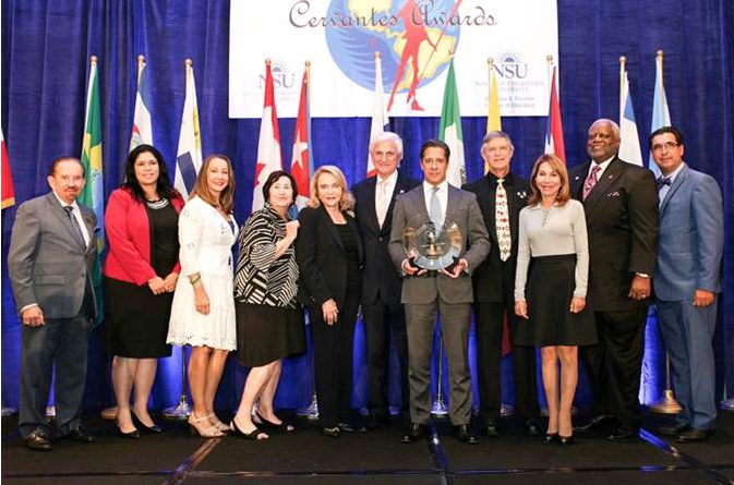 Miami-Dade Schools superintendent Alberto M. Carvalho was presented with the prestigious Cervantes Outstanding Educator Award recently in a ceremony at the Miami Airport Hilton. Named for famed 15th Century Spanish writer Miguel de Cervantes, the award is presented annually by the Nova Southeastern University’s Abraham S. Fischler College of Education to honorees who have made significant contributions to promote excellence in the education of Hispanic students. Carvalho (center) is accompanied by school board members and members of Nova Southeastern University’s Hispanic Advisory Board.