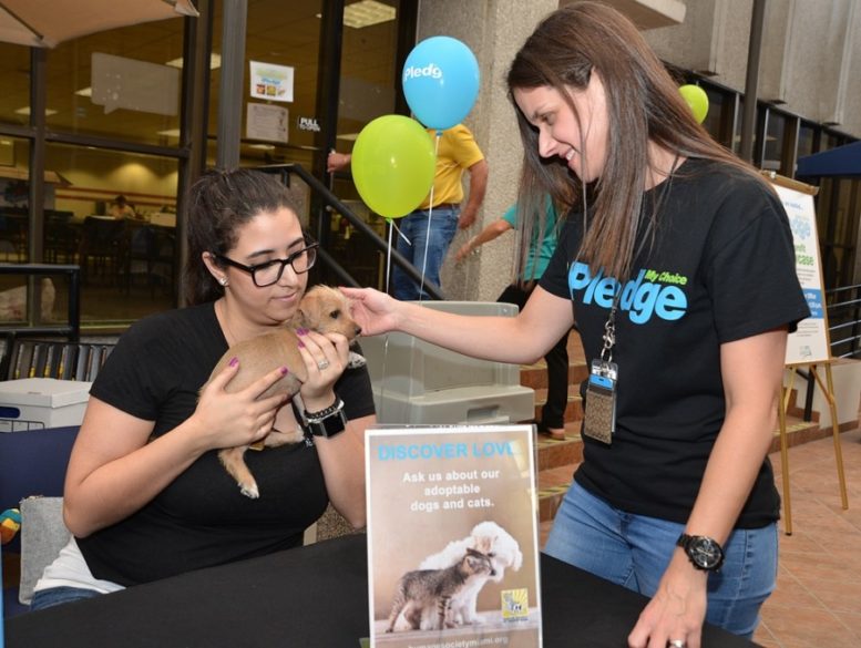 FPL employees recently had the chance to “speed date” and play with kittens and puppies from the Humane Society along with eight other nonprofits serving Miami-Dade County in hopes of scoring employees’ support for the company’s employee giving program. The nonprofits that attended at FPL’s Coral Gables office on Sept. 23 included Humane Society of Miami-Dade, United HomeCare, Everglades Foundation, Guardian Ad Litem, Miami Education Fund, American Red Cross, Habitat for Humanity, Dolphins Cancer Challenge and Special Olympics. In this photo Jossie Aguirre presents a puppy from the Humane Society of Greater Miami to FPL employee Ivette Aspuru.