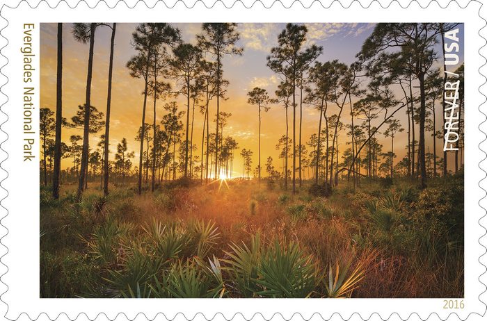 For Miami resident Paul Marcellini this was incredibly special because he created the photograph chosen to repressent Everglades National Park. The stunning image depicts the sun setting behind the pinelands and grasses of the Everglades.