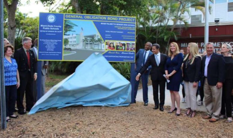 Miami-Dade County Schools superintendent Alberto M. Carvalho, School Board member Dr. Lawrence Feldman, Miami Palmetto High principal Victoria G. Dobbs, district administrators, school staff, and students gathered Dec. 8 to launch the General Obligation Bond (GOB) project at Miami Palmetto High School.