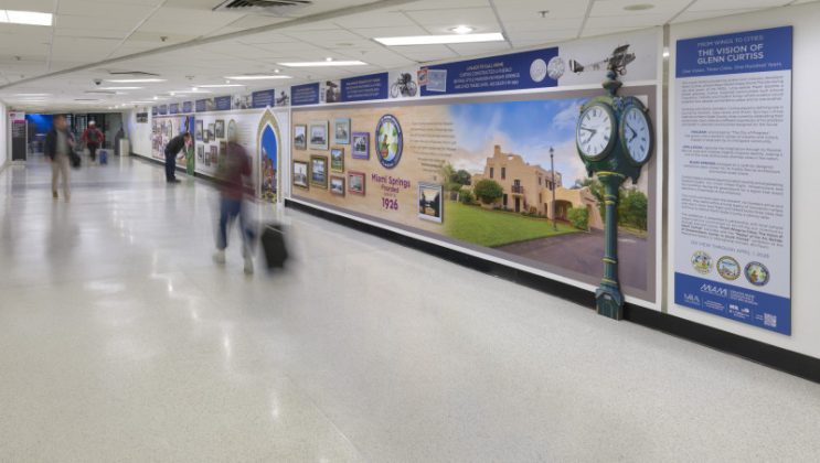In partnership with the Greater Miami Convention and Visitors Bureau and other local cultural organizations, From Wings to Cities: The Vision of Glenn Curtiss, is now on display through April 1, 2026, at MIA’s Connecting Communities Wall on the arrivals level near door 11. The mural features historic images and milestones of each city over the past 100 years.