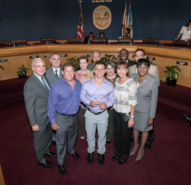 Palmer Trinity School (PTS) senior Blake Miller received the Mayor’s Shining Scholars’ The Emerging Leader Award during the Miami-Dade County Commission meeting on Apr. 19. The Emerging Leader Award recognizes students who have inspired positive change in others and the community.