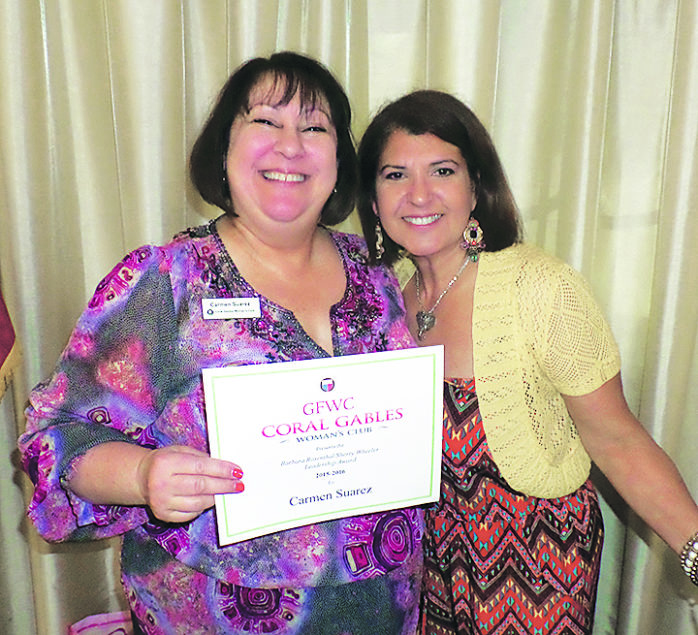 Among the evening’s highlights was the presentation of the annual Barbara Rosenthal Leadership Award by outgoing President Mayra Dominguez to Carmen Suarez. Carmen not only chaired the club’s first annual gala but has also held many other positions including the position of club secretary.