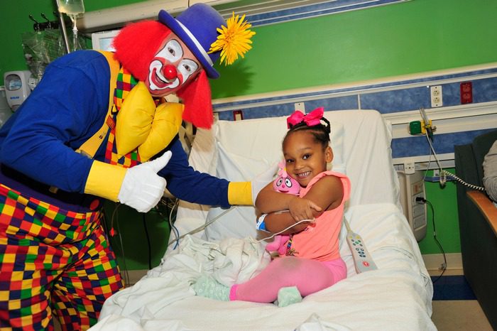 The Youth Fair’s popular Tadpole the Clown made his rounds delivering bright smiles and laughter to the pediatric patients and families at Holtz Children’s and Baptist Children’s hospitals during two separate visits. His special surprise took place at Holtz Children’s Hospital on Mar. 24 and Baptist Children’s Hospital on Mar. 30, where patients also received a special treat as a part of Tadpole’s visit.