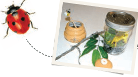 Ladybugs like humidity, so if your leaves and sticks dry out, spray with a little water. Make sure to keep a damp cotton ball and raisin in the jar for food and water. Ladybugs like honey too. Place a small drop of honey on the damp cotton ball for a special treat for your new pet!