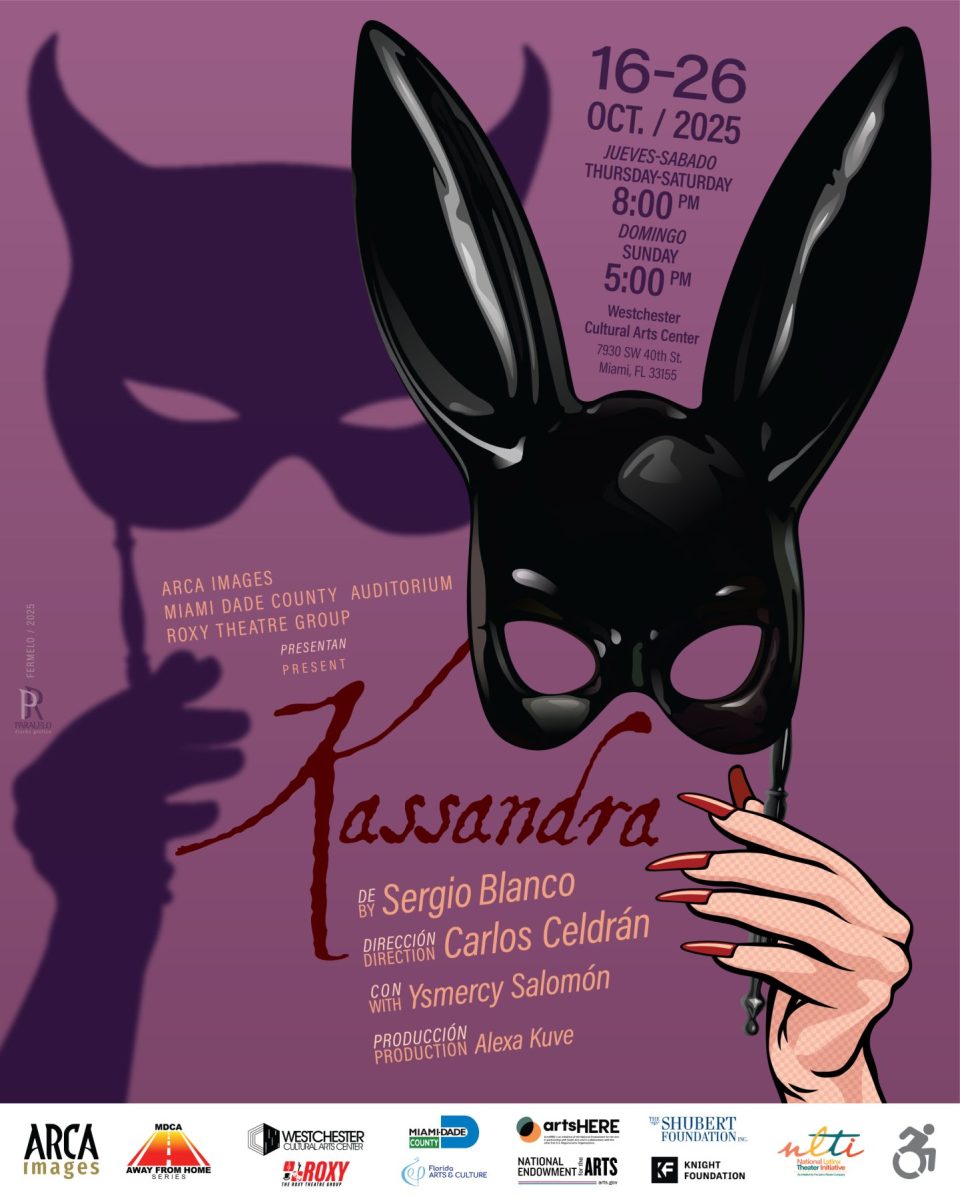 Sergio Blanco is an Uruguayan playwright and director based in Paris. His plays have been performed in numerous countries and translated into more than fifteen languages. His many accolades include two Off West End Theatre Awards in London. Director Carlos Celdrán is a Cuban, Madrid and Miami-based writer and director, who won the “National Theater Award” of Cuba and founded the acclaimed Argos Theater company in Havana. This production of Kassandra in Miami stars actress Ysmercy Salomón.