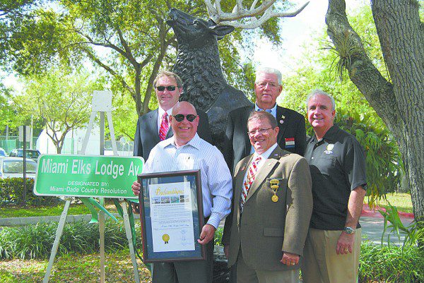 Commissioner Carlos A. Gimenez unveiled “Miami Elks Lodge Avenue” on Saturday, Mar. 4, naming a portion of SW 102nd Avenue between SW 70th and SW 74th streets in honor of the group.
