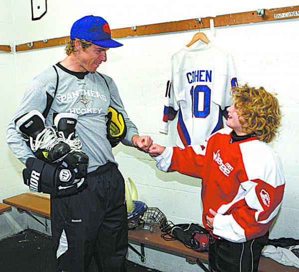 With his Miami Toros teammates, Cohen got a personal lesson on puck-handling from David Booth, star of the NHL Florida Panthers hockey team, on June 25 at the Kendall Ice Arena in the Hammocks, home rink for the junior league team.