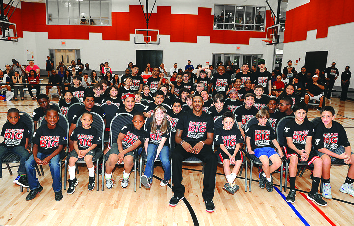Miami Heat’s Mario Chalmers is joined by some 50 aspiring young basketball players (ages 9- 14) at the South Dade YMCA Family Center.