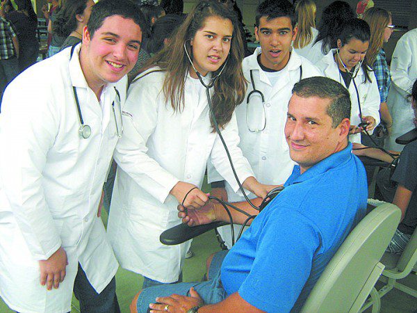 While TERRA’s biomedical students were busy providing free blood tests, George Broderman pinch-hit for wife, Carmen, selling tiny green bags of “healthy snacks” ($1) to help finance future activities for that program.