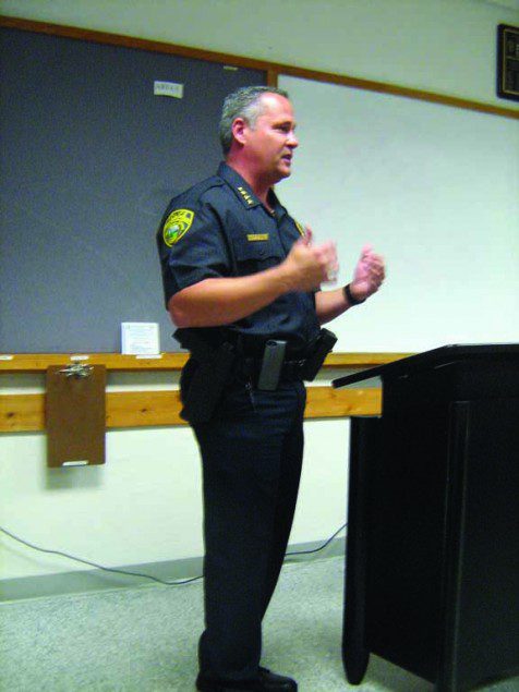 Asked to update his audience on his new role as the head of FIU security, Chief Casas once again spoke before more than 30 residents and officials who he often updated on area police affairs as commander from 2008 to 2011.