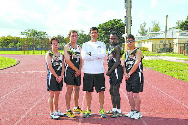 Each morning, four young men from the Learning Experience School go to the track at Tropical Park to practice the 100-meter dash and the 4 x 100 relay.