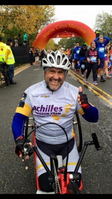 An angel named Mary Bryant-McCourt from Achilles International, helped Roman find new purpose through sports. Achilles International is a non-profit organization with chapters all over the world that sponsors dozens of marathons annually for persons with disabilities and Bryant-McCourt is founder and director of the Achilles Freedom Team, which concentrates its efforts on the Veteran’s community.