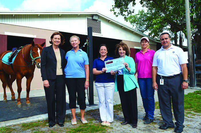 The check donation was presented at the Whispering Manes riding facility in Kendall on Apr. 11. The donations will support more than 18 hours of riding time for local South Florida veterans from the Miami VA.