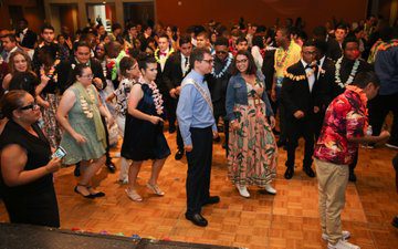 As in any other prom, students attend decked out in tuxedos and prom dresses, dancing to music from a professional disc jockey. Two students are crowned king and queen. About 500 students attend the event every year.