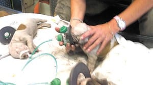 Upon arrival, fire crews were advised that there was a litter of puppies still inside the house. Firefighters were successful in locating and rescuing the puppies from the burning home. Paramedics treated three puppies on scene by administering oxygen with a pet oxygen mask then transported them to a local animal hospital for additional treatment.