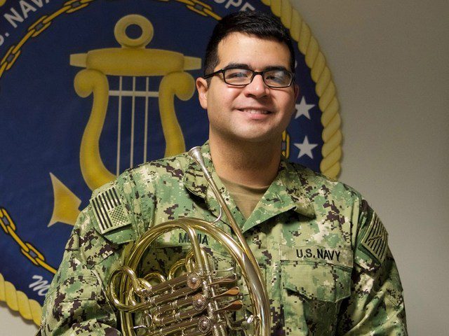 Petty Officer Second Class Alejandro Mejia of Miami has served in the U.S. Navy for two years as a musician. A Penn State University graduate, Mejia currently is serving in Naples, Italy. “I had student loan debts that needed to be paid and other financial obligations that needed to be met,” he said. “After some time on the audition circuit, I decided that the benefits, incentives, and experience offered by the Navy were too good to pass up.”