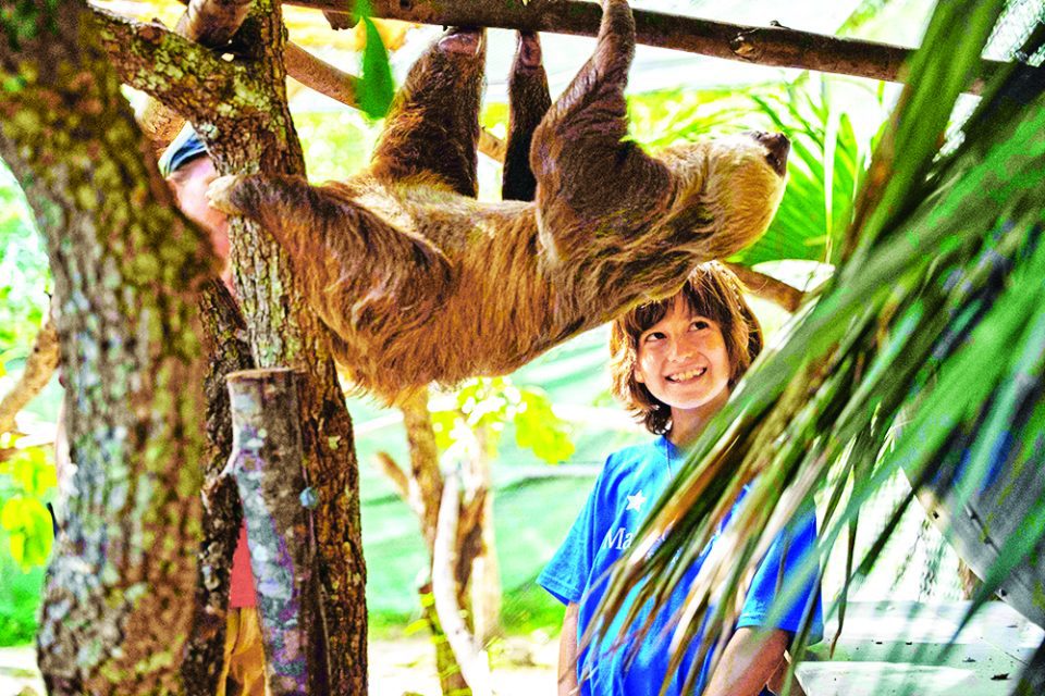 Emmy not only had her dream to meet a sloth come true, she also fed, interacted and learned about giraffes, chimps, elephants, a rhino, a giant Galapagos tortoise, and other animals.