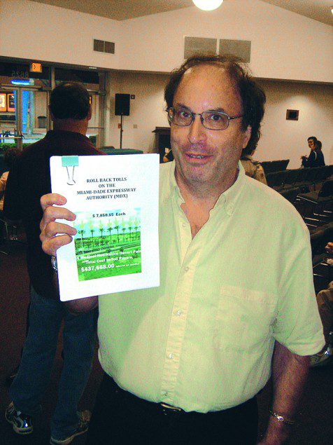 Roll Back Tolls — initiated in 2010 by Garcia, a Kendall advertising agency owner, and Miller Myers, a newspaper advertising executive — has gained increasing support for its objections to MDX projects with both men appearing regularly to challenge MDX spokespersons at public informational meetings and MDX Board sessions.