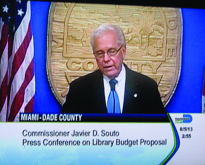 In an impassioned 30-minute address televised countywide on Aug. 5, Miami- Dade County Commissioner Javier Souto charged “the private community with keeping library doors open,” if government fails to do so.”