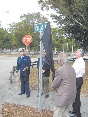 With more than 100 veterans on hand, a newly named “Veterans Way” was ceremonially unveiled on Feb. 4 as an entryway to the Veterans Memorial at Tropical Park.