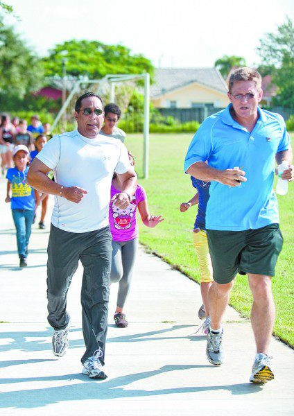 Miami-Dade Commission chair Joe Martinez (left) and Parks director Jack Kardys try one mile run.