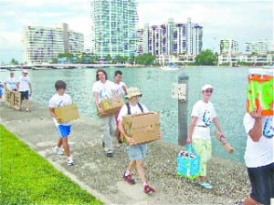 On Saturday, September 25, 2010, ECOMB’s energetic volunteers, staff from the City of Miami Beach, the City of Miami and Miami-Dade County cleaned up the shoreline of Maurice Gibbs Park, the Flagler Monument Island and Teacher’s Island as part of the Ocean Conservancy’s International Coastal Clean-up Day and the “Adopt a Park Program.” This was a partnership program between the City of Miami Beach, ECOMB and the Mondrian Hotel. This event was co-sponsored by the Cargill Corporation. Students of all ages were encouraged to join and receive community service hours for their hard work. This could be considered the world’s largest single day volunteer environmental cleanup event of its nature!