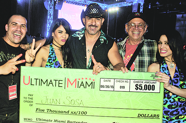 Juan Sosa, bartender at Mango’s Tropical Café, won the title of Miami’s Ultimate Bartender 2015 at a heated competition last Friday, June 26th at Magic City Casino. In 2000 when Juan Sosa came from Argentina and was hired as a barback at Mango’s Tropical Café on South Beach, little did he know that his career would spiral and he would win the title of “Miami’s Ultimate Bartender” and a cash prize of $5,000.