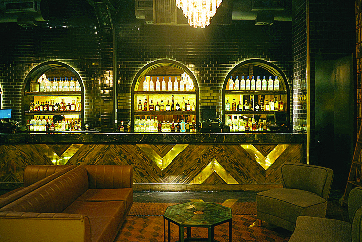 Enter through a long access shaft that feels purposefully hidden, lined in vintage chicken wire, glass and raw steel columns. Turn the corner and behold Libertine – tucked away, dim and at the same time decadent. Designed by Thrilwall Design, Libertine is lined with 150 year-old reflective mirrors and subway tile, apothecary containers and shelving that illuminates bourbons, whiskeys and hundreds of other specialty liquors. The floor is covered in thousands of real pennies, sorted by finish to create a trompe l’oeil. Comfortable leather sofas are mixed with retro-style light armchairs and coffee tables in front of two opposing walls featuring an 18th century white marble fireplace and a wall of books framed by green velvet curtains while elements like burlesque chandeliers, poker tables, and antique rugs line the space. Music programming is curated by Supermarket Creative’s Michelle Leshem, and sounds will include cult classics, new wave and indie like Pulp Beastie Boys, Yelle, The Sonics, Talking Heads and Tom Tom Club, to melodic dance sounds from Soul Clap, Aeroplane, Holy Ghost!, Flight Facilities, Groove Armada, Escort and more.